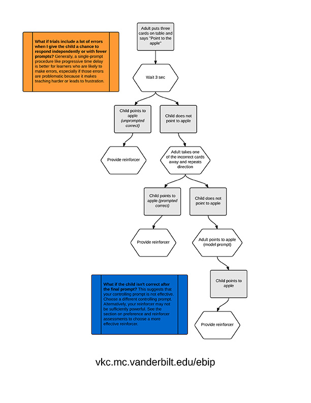 - If the child doesn’t touch the apple (Prompted Error), the adult provides very brief corrective feedback (“This is the apple”)