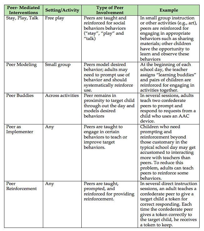 Examples of Peer-Mediated Interventions: