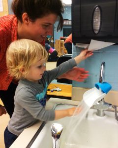 - Have the child put on a clean diaper, and wash hands